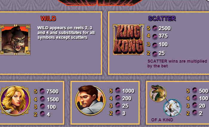 Обзор игрового автомата King Kong, комбинации и правила игры